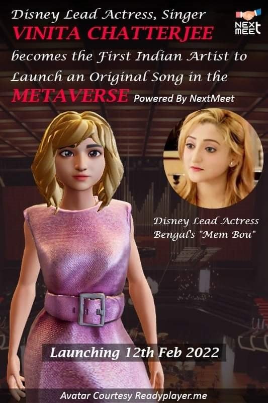 Disney and Star Tv Lead Actress, Rapper & Bengal’s favourite “Mem Bou” Vinita Chatterjee becomes the first Female Indian Artist to Launch an Original Music Video in the Metaverse. She is also the First Bengali Actor-Singer-Rapper in the world of Metaverse.